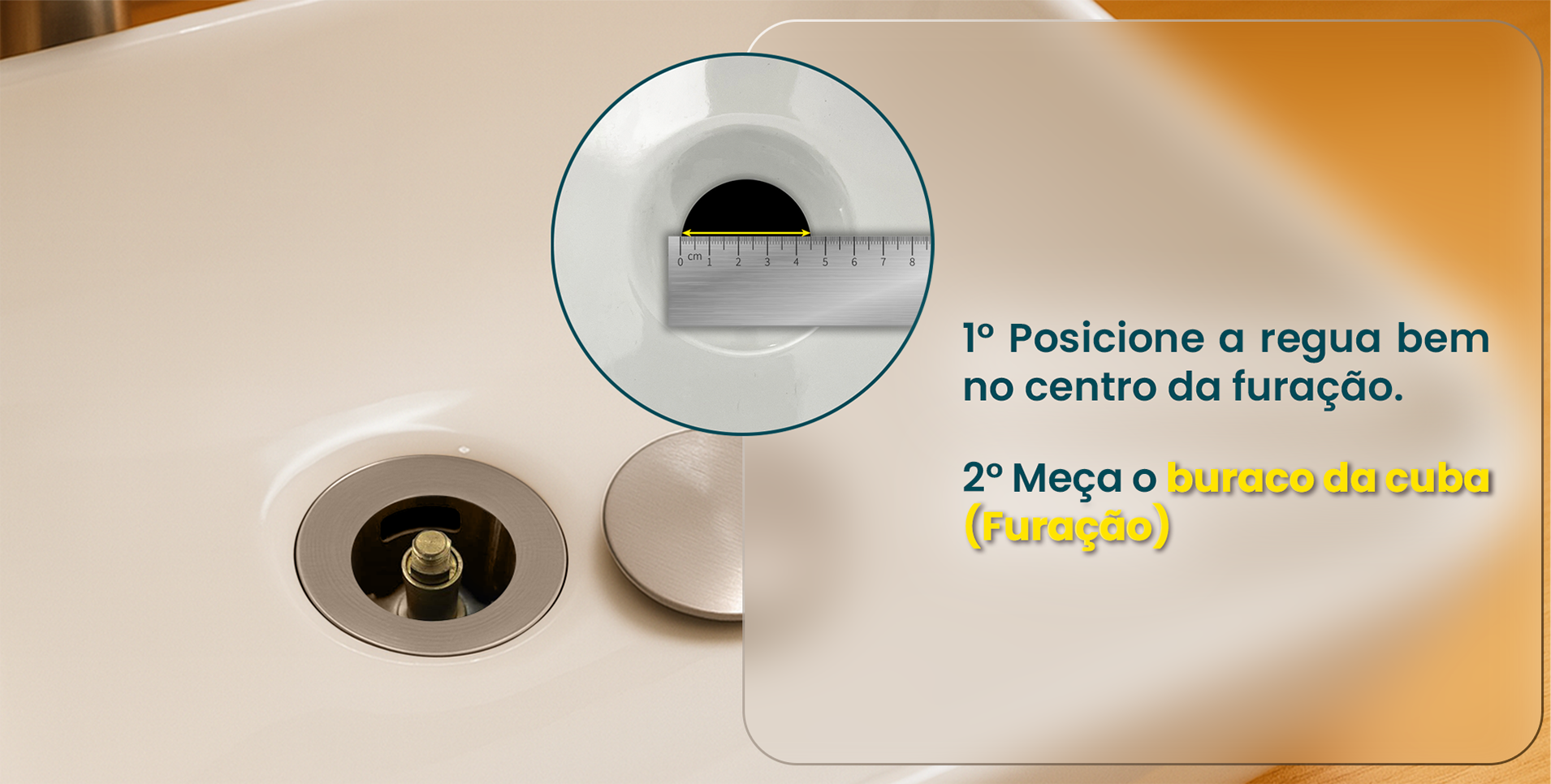 Use as instruções abaixo para medir a furação (buraco da cuba) e a borda de apoio.